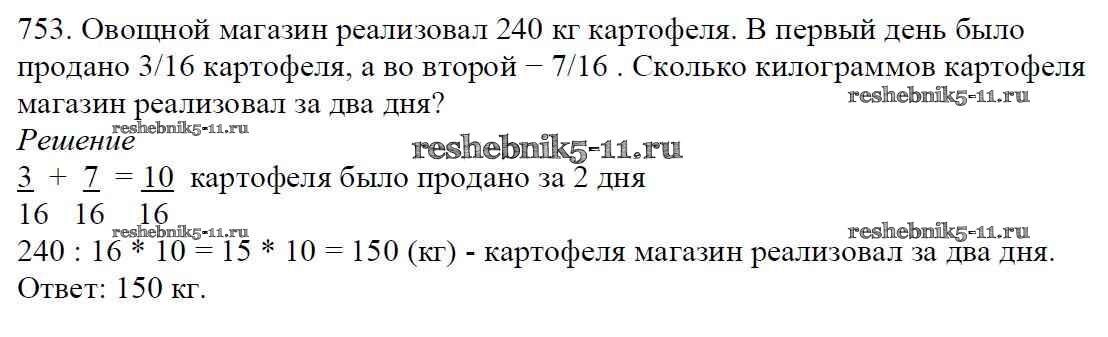 Готовая домашняя работа с ответами по Математике за 5 класс Мерзляк, Полонский, Якир Учебник Алгоритм успеха Вентана-граф 2016 ФГОС - §27. Сложение и вычитание дробей с одинаковыми знаменателями 753