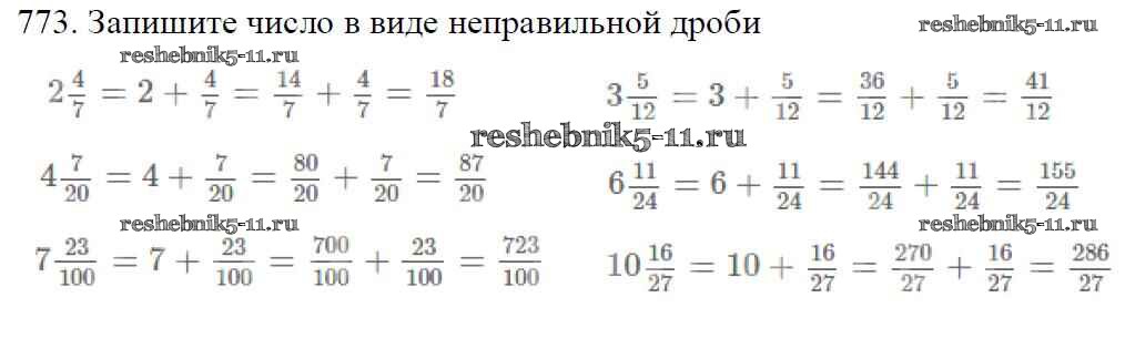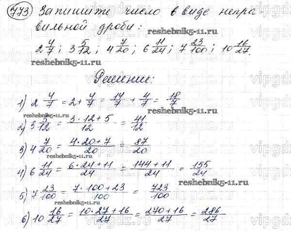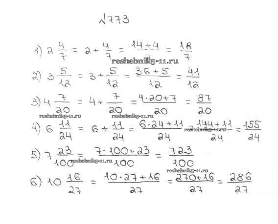 Готовая домашняя работа с ответами по Математике за 5 класс Мерзляк, Полонский, Якир Учебник Алгоритм успеха Вентана-граф 2016 ФГОС - §29. Смешанные числа 773