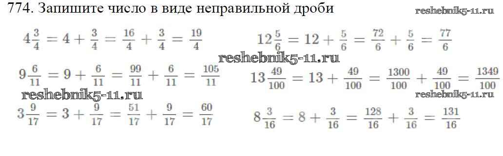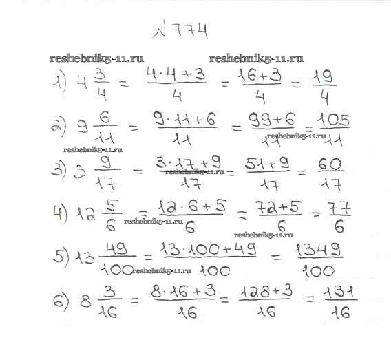 Готовая домашняя работа с ответами по Математике за 5 класс Мерзляк, Полонский, Якир Учебник Алгоритм успеха Вентана-граф 2016 ФГОС - §29. Смешанные числа 774