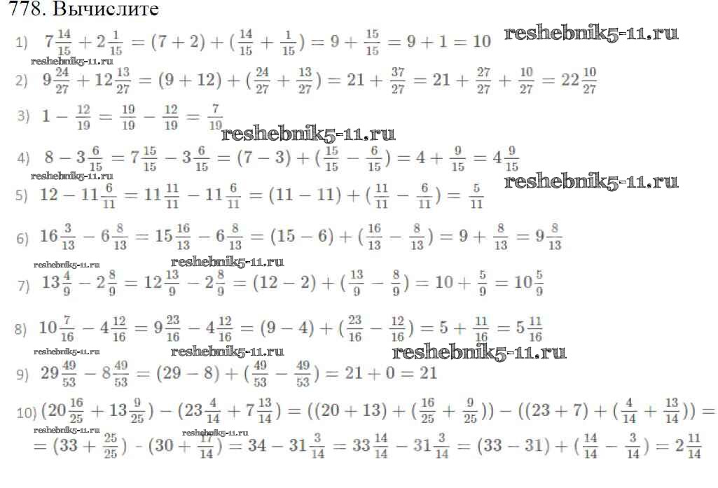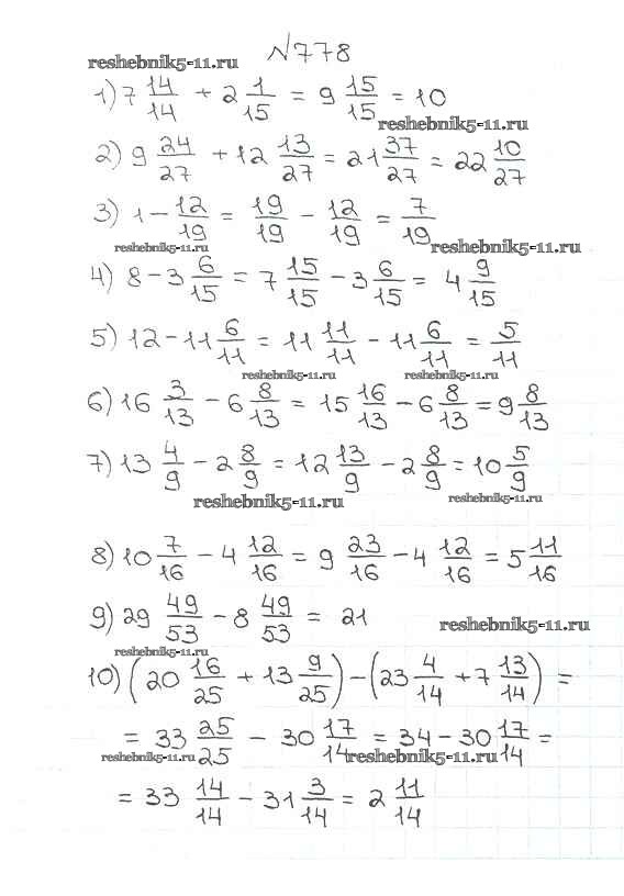 Готовая домашняя работа с ответами по Математике за 5 класс Мерзляк, Полонский, Якир Учебник Алгоритм успеха Вентана-граф 2016 ФГОС - §29. Смешанные числа 778
