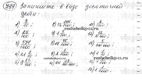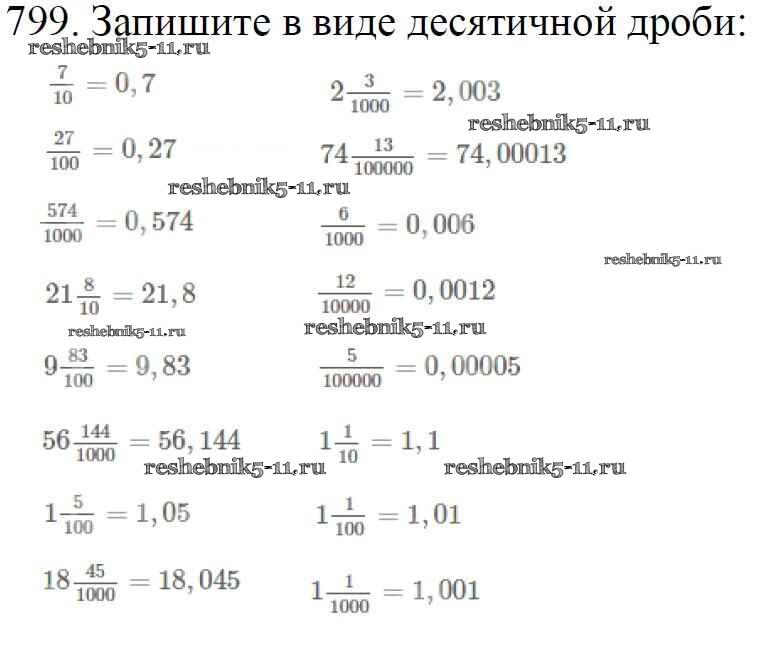 Готовая домашняя работа с ответами по Математике за 5 класс Мерзляк, Полонский, Якир Учебник Алгоритм успеха Вентана-граф 2016 ФГОС - §30. Представление о десятичных дробях 799