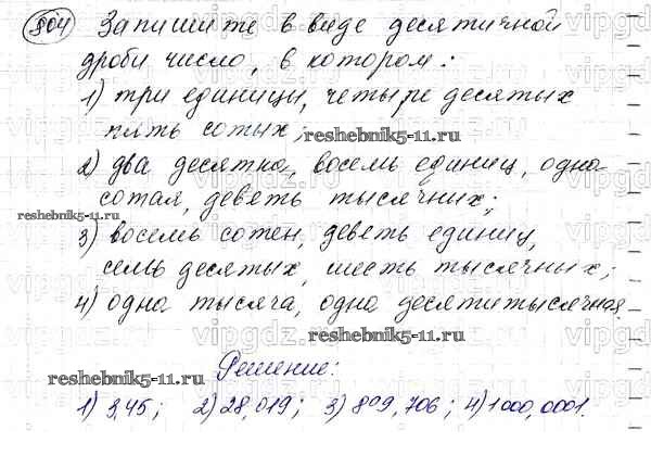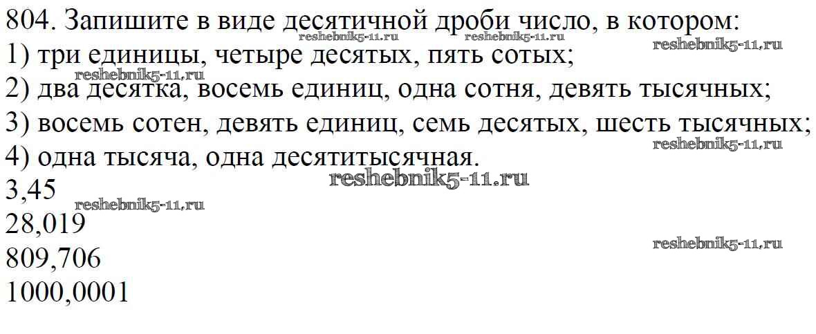 Готовая домашняя работа с ответами по Математике за 5 класс Мерзляк, Полонский, Якир Учебник Алгоритм успеха Вентана-граф 2016 ФГОС - §30. Представление о десятичных дробях 804