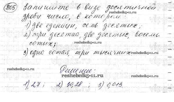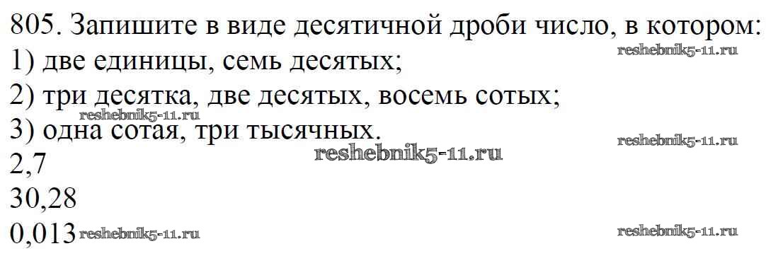 Готовая домашняя работа с ответами по Математике за 5 класс Мерзляк, Полонский, Якир Учебник Алгоритм успеха Вентана-граф 2016 ФГОС - §30. Представление о десятичных дробях 805