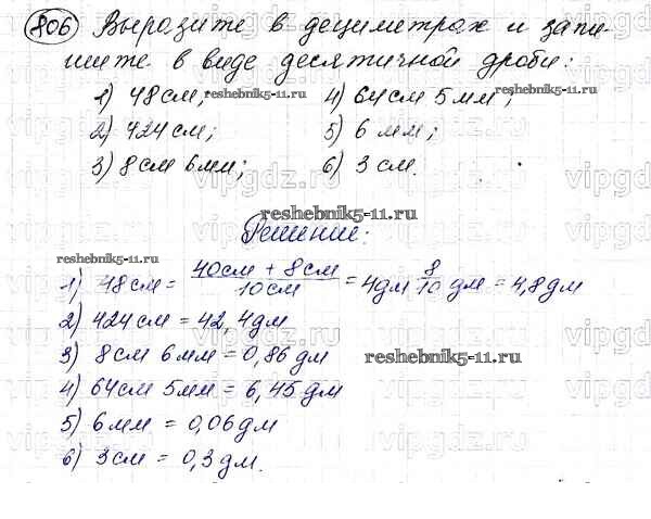 Готовая домашняя работа с ответами по Математике за 5 класс Мерзляк, Полонский, Якир Учебник Алгоритм успеха Вентана-граф 2016 ФГОС - §30. Представление о десятичных дробях 806