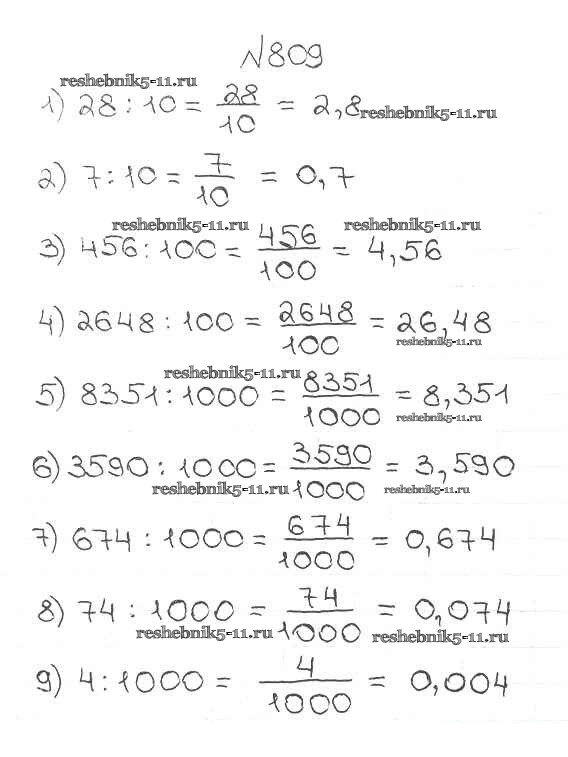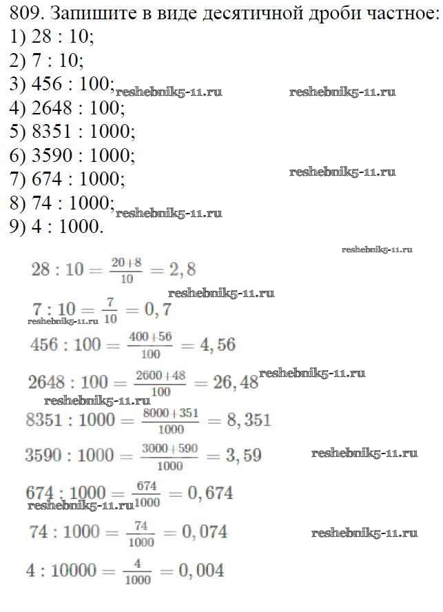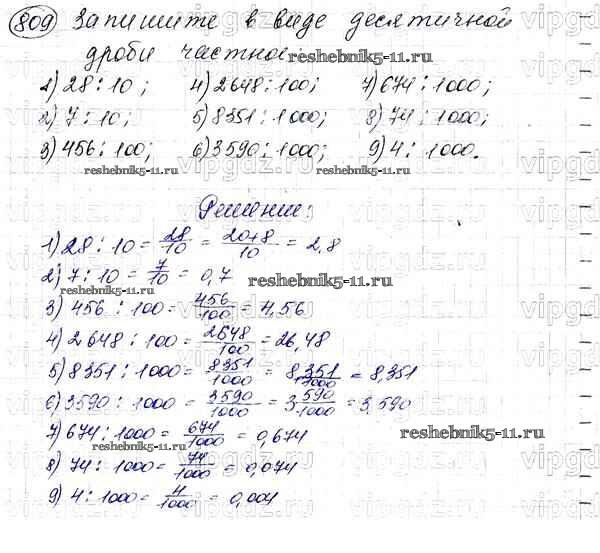 Готовая домашняя работа с ответами по Математике за 5 класс Мерзляк, Полонский, Якир Учебник Алгоритм успеха Вентана-граф 2016 ФГОС - §30. Представление о десятичных дробях 809