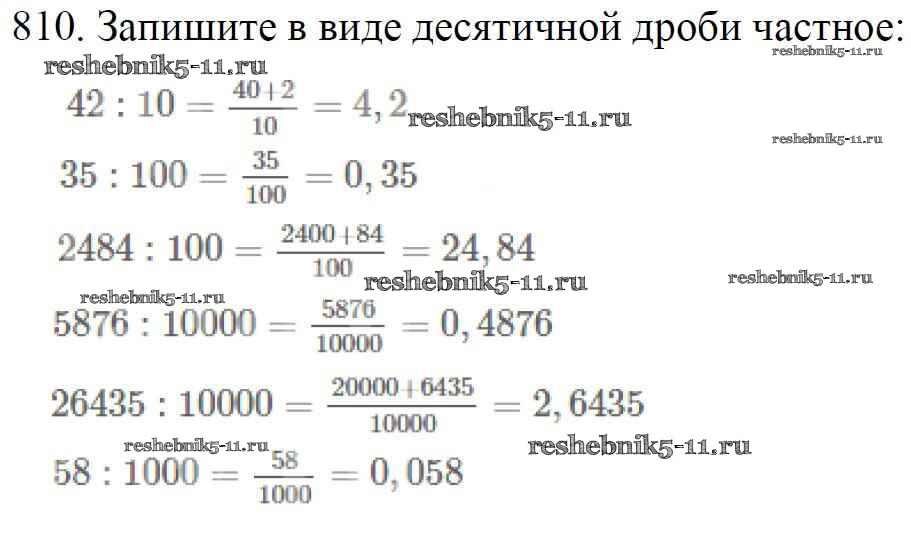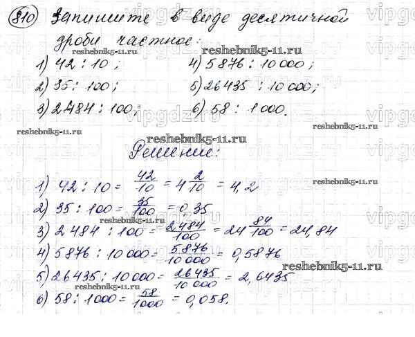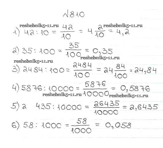 Готовая домашняя работа с ответами по Математике за 5 класс Мерзляк, Полонский, Якир Учебник Алгоритм успеха Вентана-граф 2016 ФГОС - §30. Представление о десятичных дробях 810
