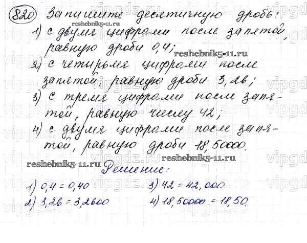 Готовая домашняя работа с ответами по Математике за 5 класс Мерзляк, Полонский, Якир Учебник Алгоритм успеха Вентана-граф 2016 ФГОС - §31. Сравнение десятичных дробей 820