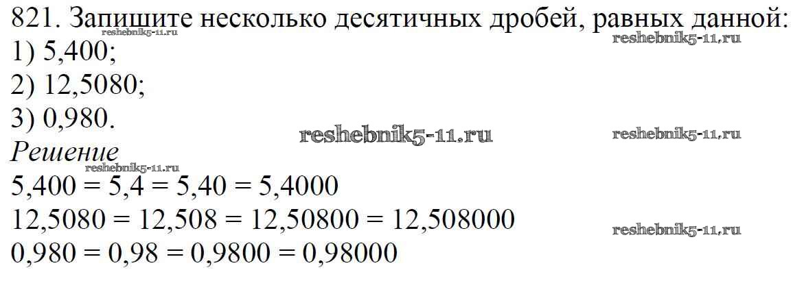 Готовая домашняя работа с ответами по Математике за 5 класс Мерзляк, Полонский, Якир Учебник Алгоритм успеха Вентана-граф 2016 ФГОС - §31. Сравнение десятичных дробей 821