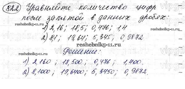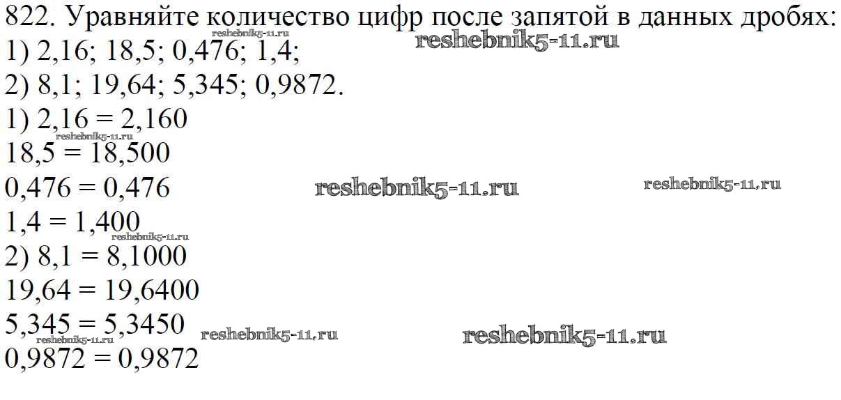 Готовая домашняя работа с ответами по Математике за 5 класс Мерзляк, Полонский, Якир Учебник Алгоритм успеха Вентана-граф 2016 ФГОС - §31. Сравнение десятичных дробей 822