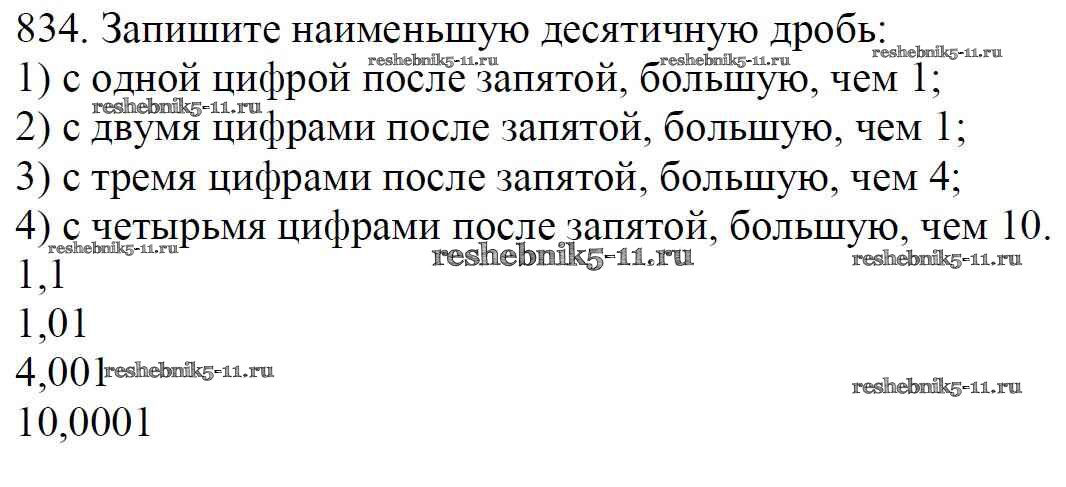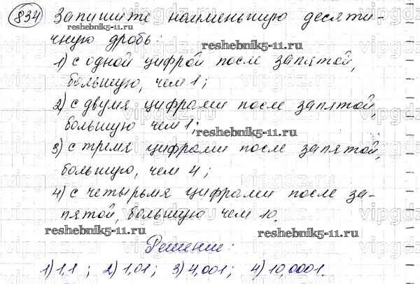 Готовая домашняя работа с ответами по Математике за 5 класс Мерзляк, Полонский, Якир Учебник Алгоритм успеха Вентана-граф 2016 ФГОС - §31. Сравнение десятичных дробей 834