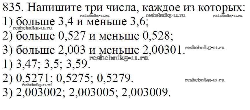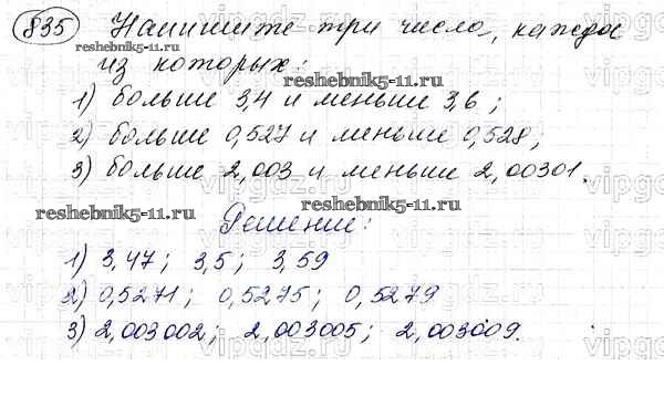 Готовая домашняя работа с ответами по Математике за 5 класс Мерзляк, Полонский, Якир Учебник Алгоритм успеха Вентана-граф 2016 ФГОС - §31. Сравнение десятичных дробей 835