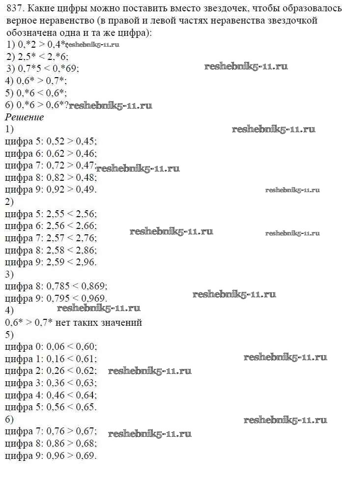 Готовая домашняя работа с ответами по Математике за 5 класс Мерзляк, Полонский, Якир Учебник Алгоритм успеха Вентана-граф 2016 ФГОС - §31. Сравнение десятичных дробей 837