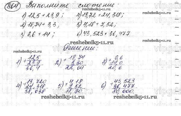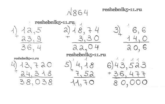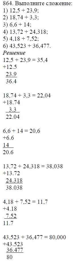 Готовая домашняя работа с ответами по Математике за 5 класс Мерзляк, Полонский, Якир Учебник Алгоритм успеха Вентана-граф 2016 ФГОС - §33. Сложение и вычитание десятичных дробей 864