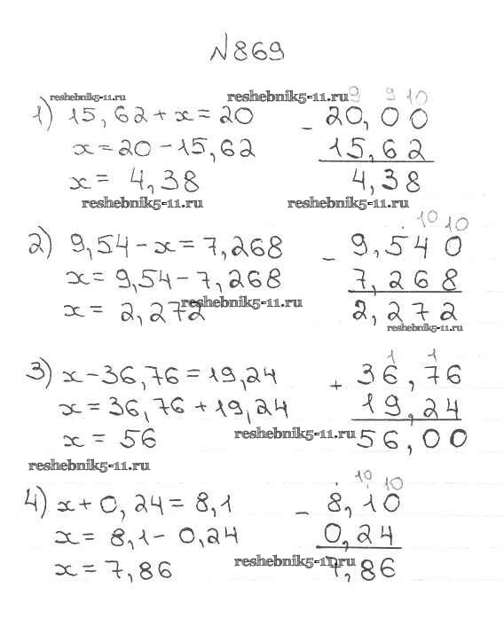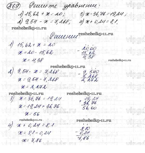 Готовая домашняя работа с ответами по Математике за 5 класс Мерзляк, Полонский, Якир Учебник Алгоритм успеха Вентана-граф 2016 ФГОС - §33. Сложение и вычитание десятичных дробей 869