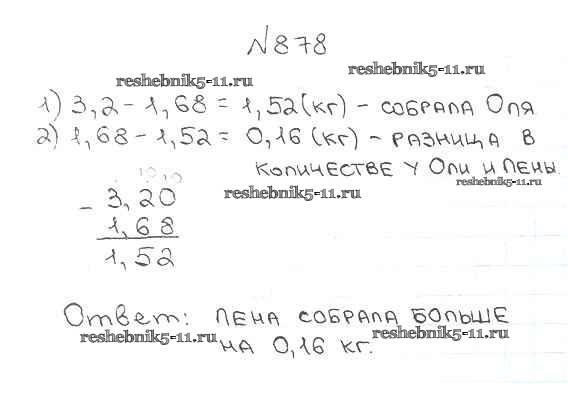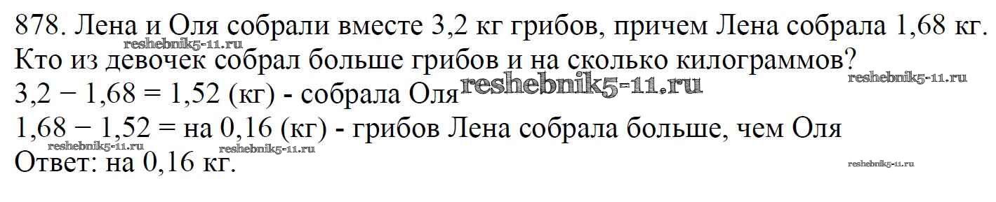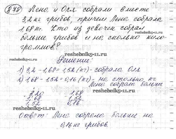 Готовая домашняя работа с ответами по Математике за 5 класс Мерзляк, Полонский, Якир Учебник Алгоритм успеха Вентана-граф 2016 ФГОС - §33. Сложение и вычитание десятичных дробей 878
