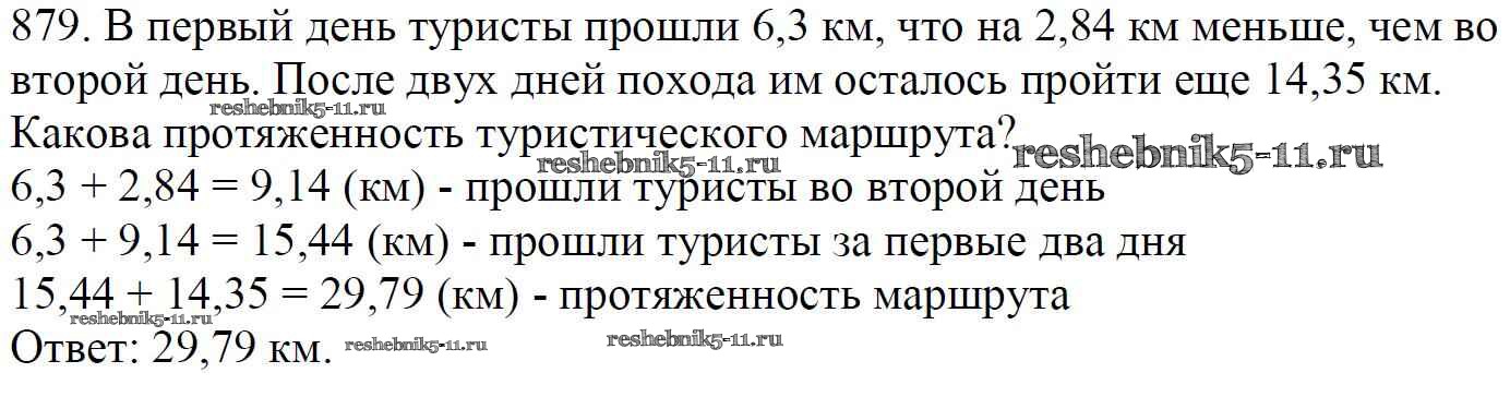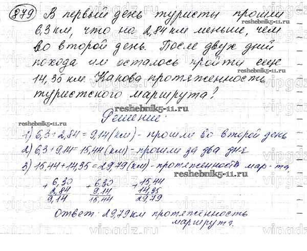 Готовая домашняя работа с ответами по Математике за 5 класс Мерзляк, Полонский, Якир Учебник Алгоритм успеха Вентана-граф 2016 ФГОС - §33. Сложение и вычитание десятичных дробей 879