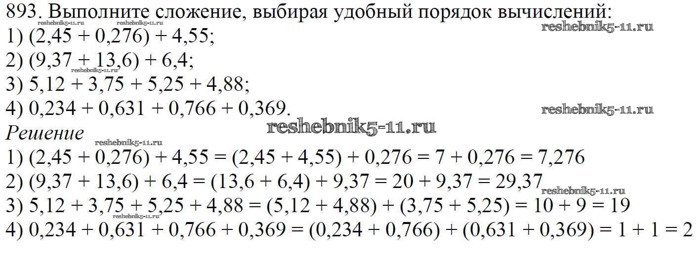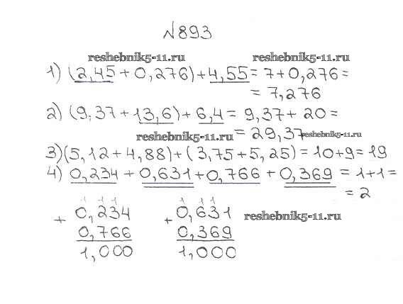 Готовая домашняя работа с ответами по Математике за 5 класс Мерзляк, Полонский, Якир Учебник Алгоритм успеха Вентана-граф 2016 ФГОС - §33. Сложение и вычитание десятичных дробей 893