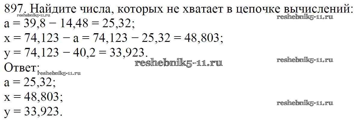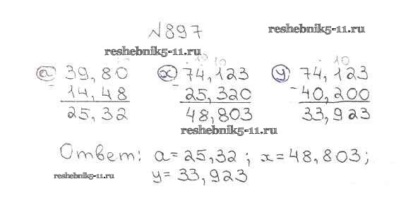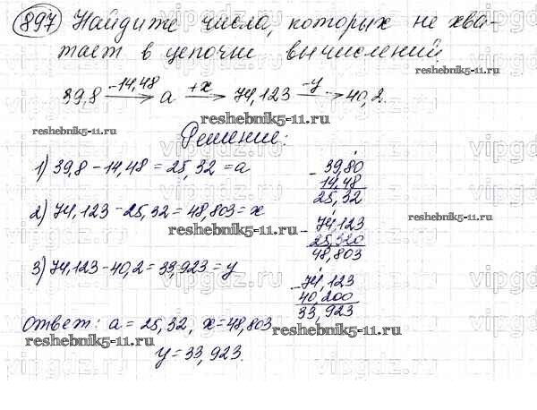 Готовая домашняя работа с ответами по Математике за 5 класс Мерзляк, Полонский, Якир Учебник Алгоритм успеха Вентана-граф 2016 ФГОС - §33. Сложение и вычитание десятичных дробей 897