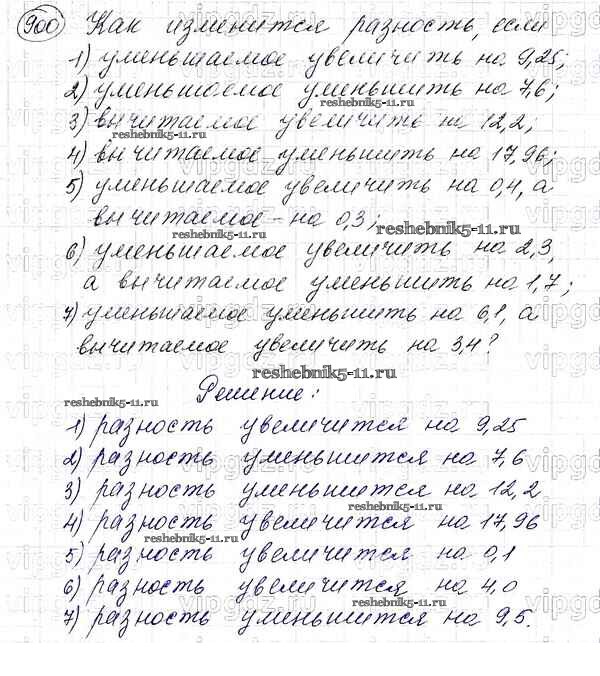 Готовая домашняя работа с ответами по Математике за 5 класс Мерзляк, Полонский, Якир Учебник Алгоритм успеха Вентана-граф 2016 ФГОС - §33. Сложение и вычитание десятичных дробей 900
