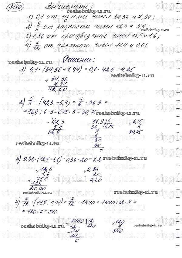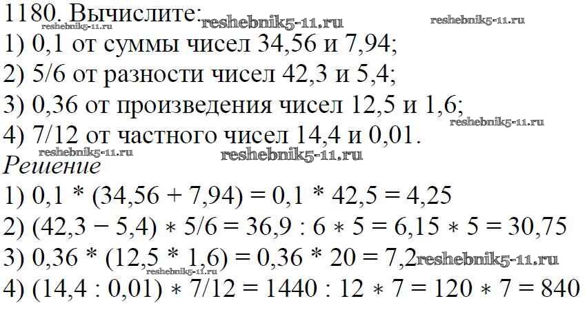 Готовая домашняя работа с ответами по Математике за 5 класс Мерзляк, Полонский, Якир Учебник Алгоритм успеха Вентана-граф 2016 ФГОС - Упражнения для повторения за курс 5 класса 1180