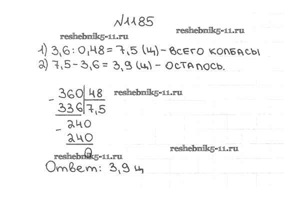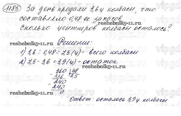 Готовая домашняя работа с ответами по Математике за 5 класс Мерзляк, Полонский, Якир Учебник Алгоритм успеха Вентана-граф 2016 ФГОС - Упражнения для повторения за курс 5 класса 1185