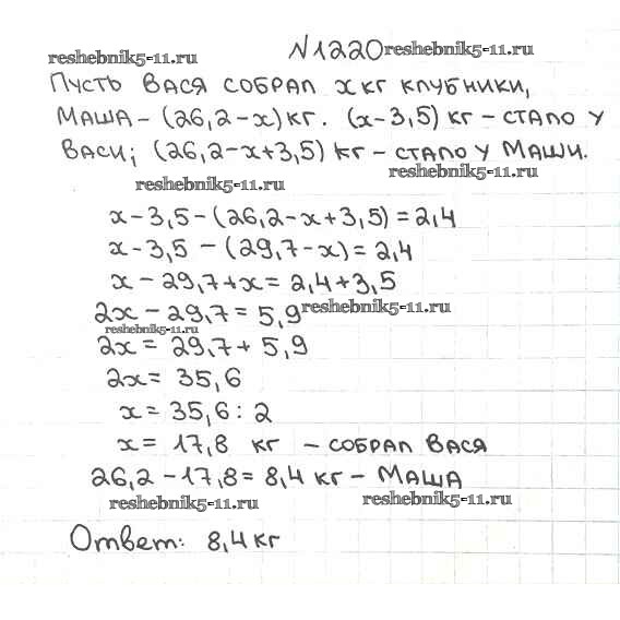 Готовая домашняя работа с ответами по Математике за 5 класс Мерзляк, Полонский, Якир Учебник Алгоритм успеха Вентана-граф 2016 ФГОС - Упражнения для повторения за курс 5 класса 1220