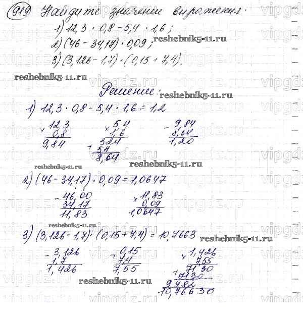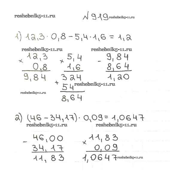 Готовая домашняя работа с ответами по Математике за 5 класс Мерзляк, Полонский, Якир Учебник Алгоритм успеха Вентана-граф 2016 ФГОС - §34. Умножение десятичных дробей 919