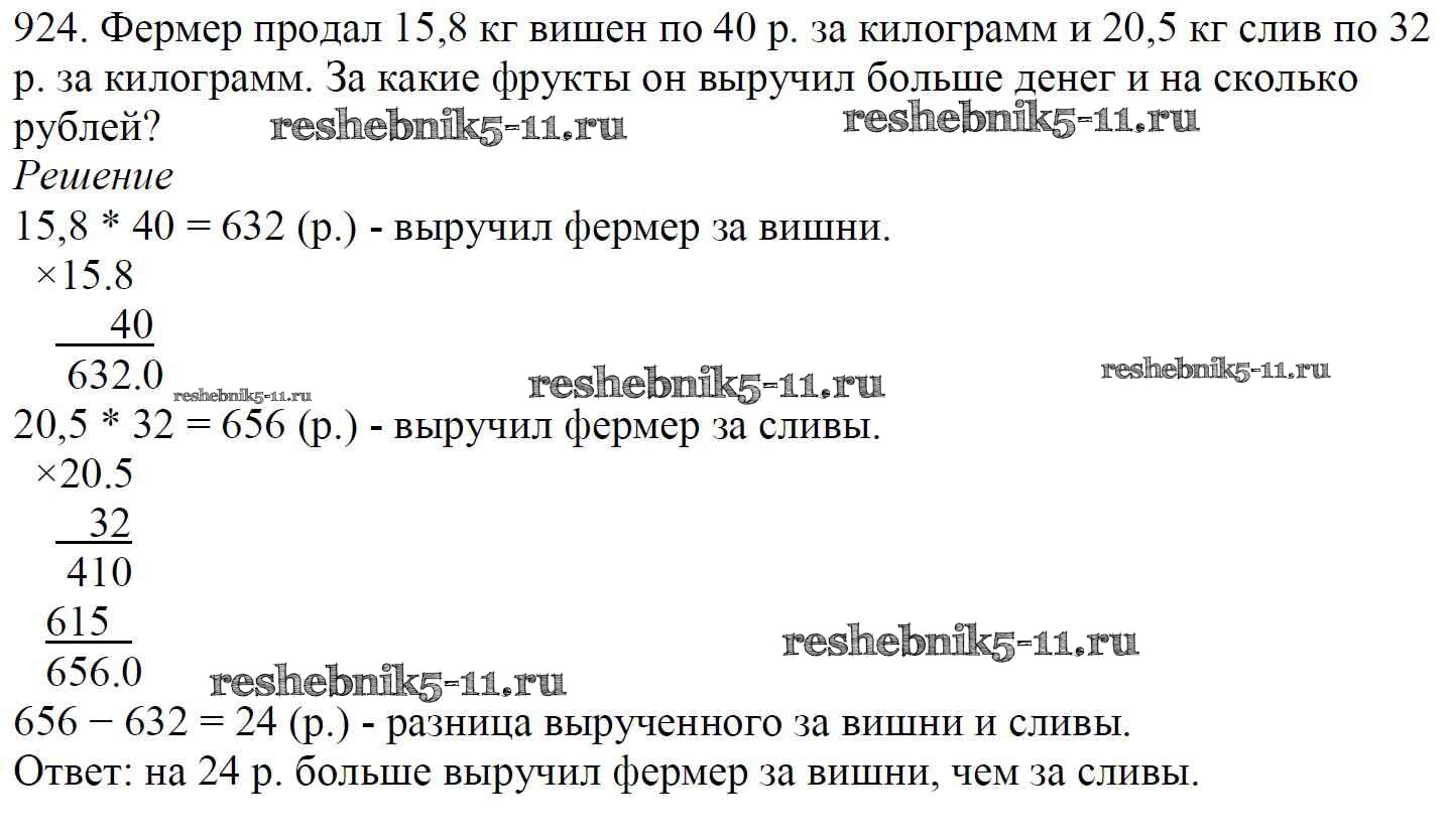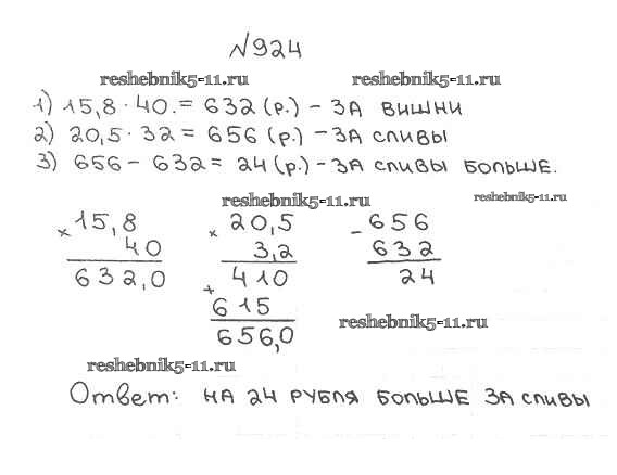 Готовая домашняя работа с ответами по Математике за 5 класс Мерзляк, Полонский, Якир Учебник Алгоритм успеха Вентана-граф 2016 ФГОС - §34. Умножение десятичных дробей 924