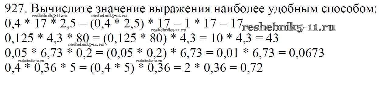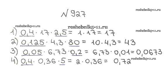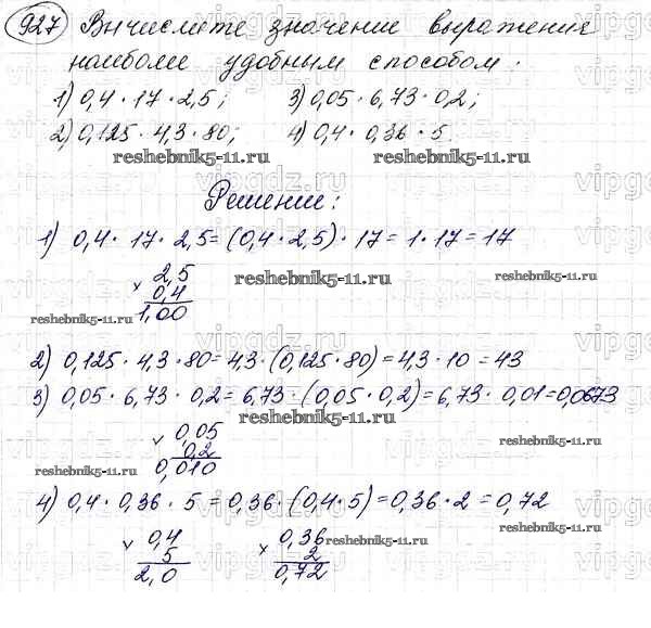 Готовая домашняя работа с ответами по Математике за 5 класс Мерзляк, Полонский, Якир Учебник Алгоритм успеха Вентана-граф 2016 ФГОС - §34. Умножение десятичных дробей 927