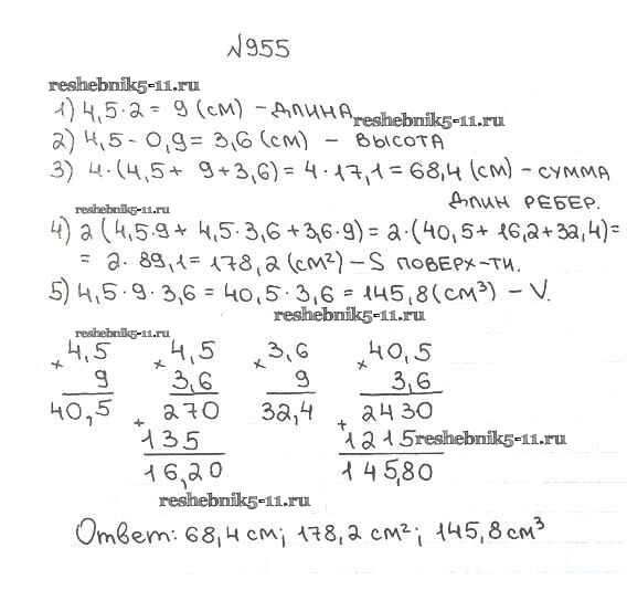 Готовая домашняя работа с ответами по Математике за 5 класс Мерзляк, Полонский, Якир Учебник Алгоритм успеха Вентана-граф 2016 ФГОС - §34. Умножение десятичных дробей 955