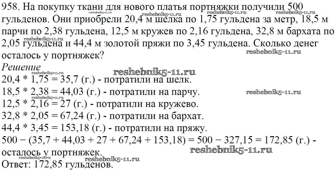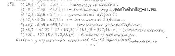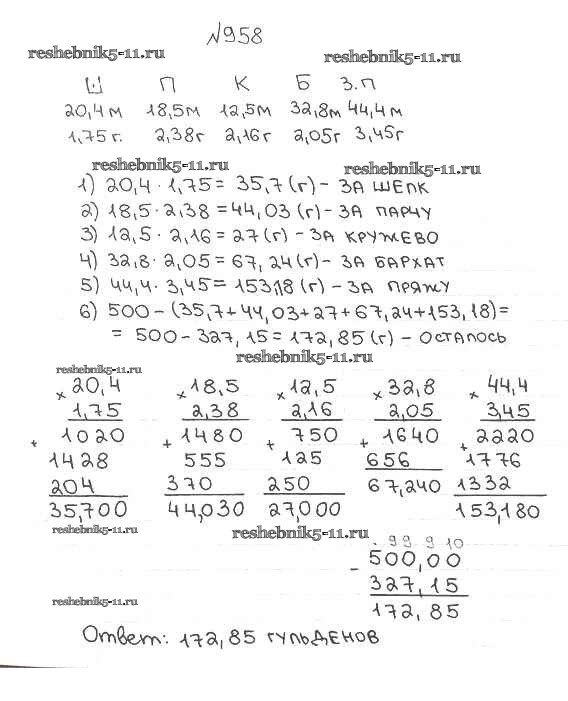 Готовая домашняя работа с ответами по Математике за 5 класс Мерзляк, Полонский, Якир Учебник Алгоритм успеха Вентана-граф 2016 ФГОС - §34. Умножение десятичных дробей 958