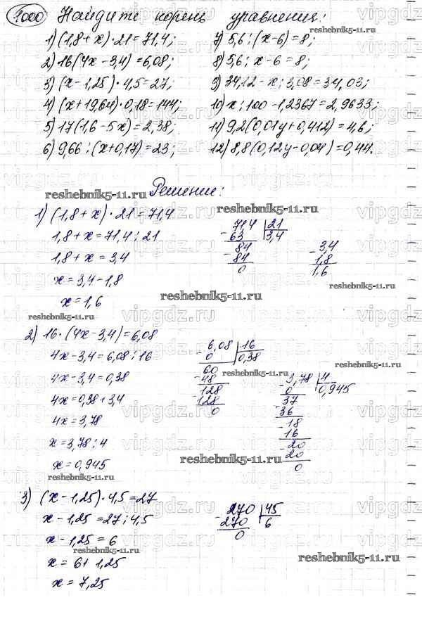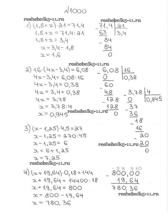 Готовая домашняя работа с ответами по Математике за 5 класс Мерзляк, Полонский, Якир Учебник Алгоритм успеха Вентана-граф 2016 ФГОС - §35. Деление десятичных дробей 1000