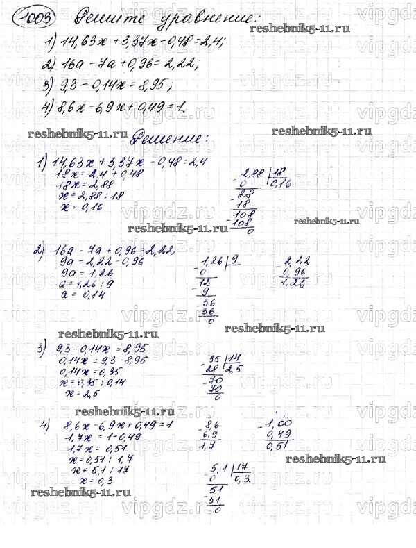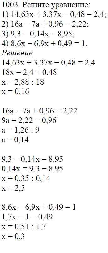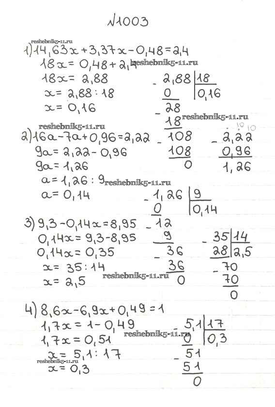 Готовая домашняя работа с ответами по Математике за 5 класс Мерзляк, Полонский, Якир Учебник Алгоритм успеха Вентана-граф 2016 ФГОС - §35. Деление десятичных дробей 1003