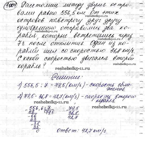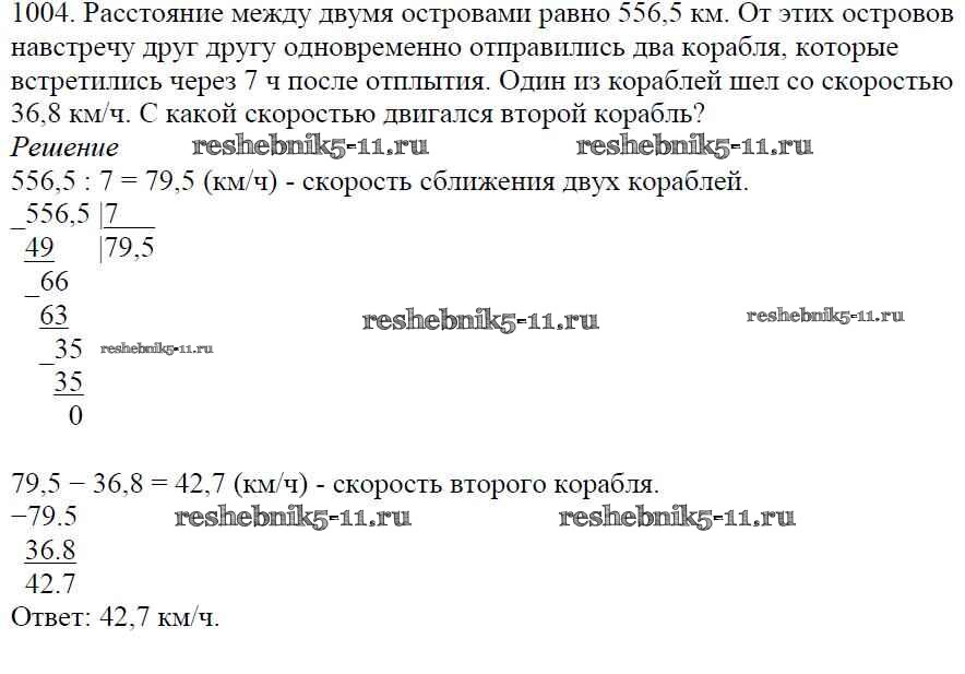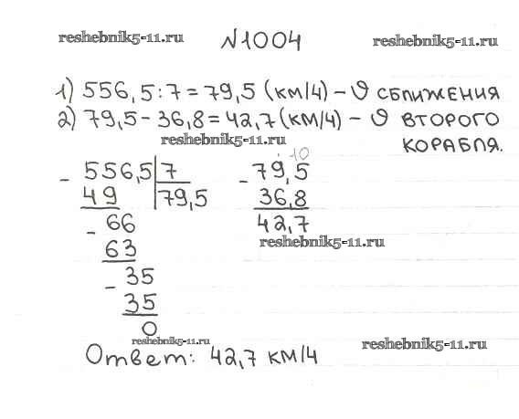 Готовая домашняя работа с ответами по Математике за 5 класс Мерзляк, Полонский, Якир Учебник Алгоритм успеха Вентана-граф 2016 ФГОС - §35. Деление десятичных дробей 1004