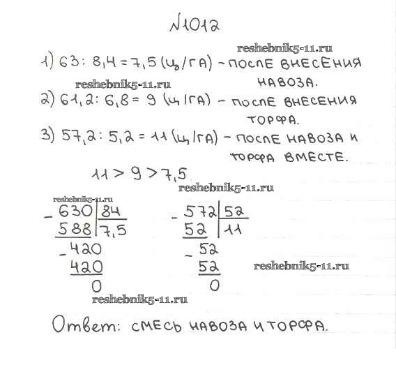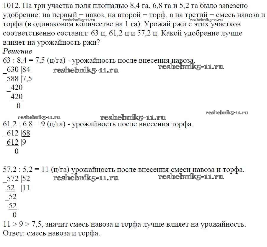 Готовая домашняя работа с ответами по Математике за 5 класс Мерзляк, Полонский, Якир Учебник Алгоритм успеха Вентана-граф 2016 ФГОС - §35. Деление десятичных дробей 1012