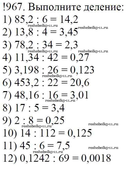 Готовая домашняя работа с ответами по Математике за 5 класс Мерзляк, Полонский, Якир Учебник Алгоритм успеха Вентана-граф 2016 ФГОС - §35. Деление десятичных дробей 967