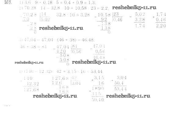 Готовая домашняя работа с ответами по Математике за 5 класс Мерзляк, Полонский, Якир Учебник Алгоритм успеха Вентана-граф 2016 ФГОС - §35. Деление десятичных дробей 969