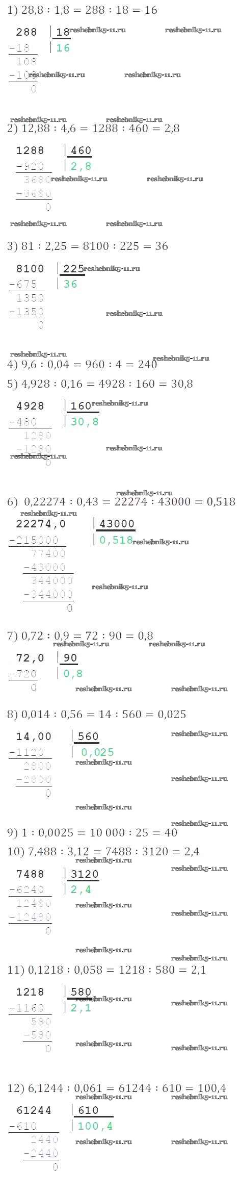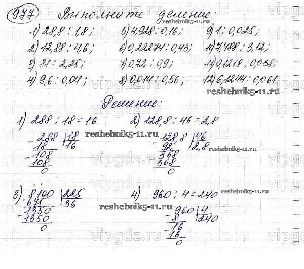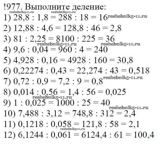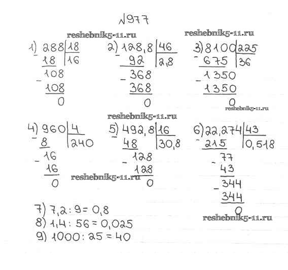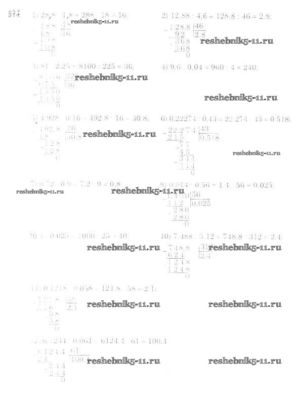 Готовая домашняя работа с ответами по Математике за 5 класс Мерзляк, Полонский, Якир Учебник Алгоритм успеха Вентана-граф 2016 ФГОС - §35. Деление десятичных дробей 977