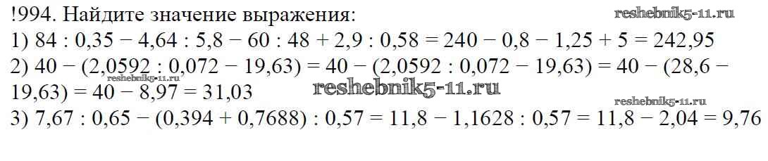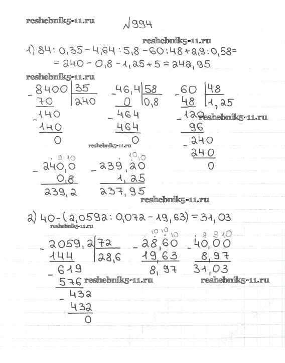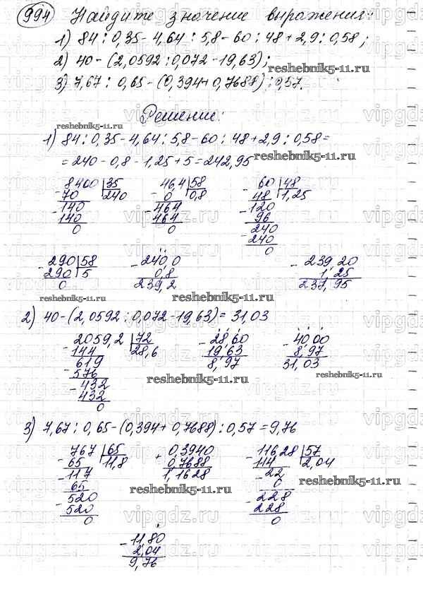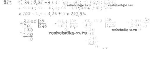 Готовая домашняя работа с ответами по Математике за 5 класс Мерзляк, Полонский, Якир Учебник Алгоритм успеха Вентана-граф 2016 ФГОС - §35. Деление десятичных дробей 994