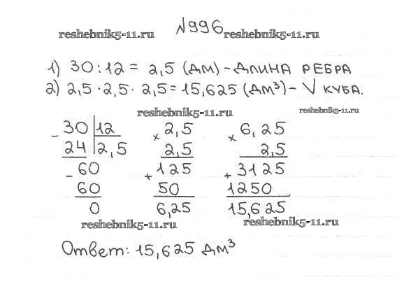 Готовая домашняя работа с ответами по Математике за 5 класс Мерзляк, Полонский, Якир Учебник Алгоритм успеха Вентана-граф 2016 ФГОС - §35. Деление десятичных дробей 996