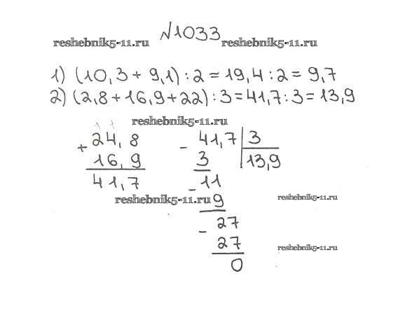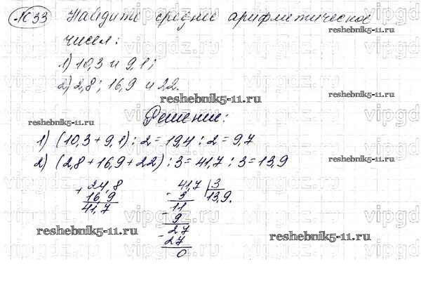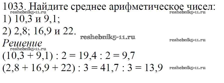 Готовая домашняя работа с ответами по Математике за 5 класс Мерзляк, Полонский, Якир Учебник Алгоритм успеха Вентана-граф 2016 ФГОС - §36. Среднее арифметическое. Среднее значение величины 1033
