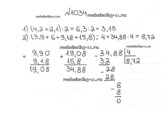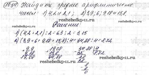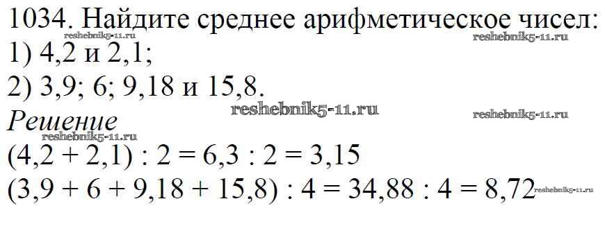 Готовая домашняя работа с ответами по Математике за 5 класс Мерзляк, Полонский, Якир Учебник Алгоритм успеха Вентана-граф 2016 ФГОС - §36. Среднее арифметическое. Среднее значение величины 1034