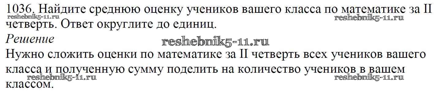 Готовая домашняя работа с ответами по Математике за 5 класс Мерзляк, Полонский, Якир Учебник Алгоритм успеха Вентана-граф 2016 ФГОС - §36. Среднее арифметическое. Среднее значение величины 1036