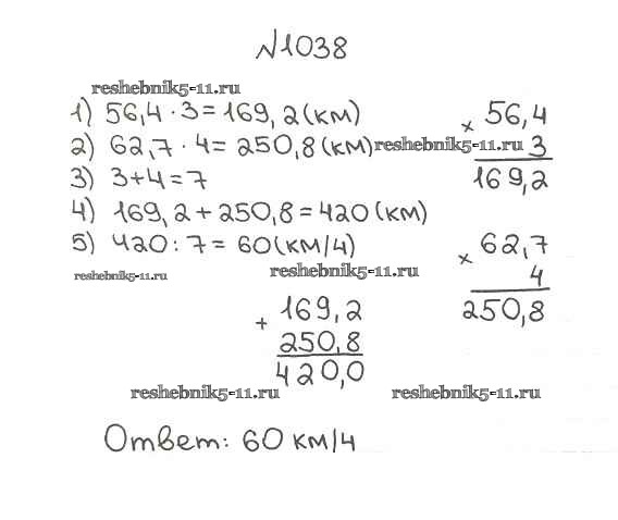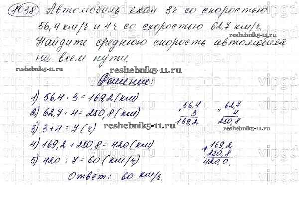 Готовая домашняя работа с ответами по Математике за 5 класс Мерзляк, Полонский, Якир Учебник Алгоритм успеха Вентана-граф 2016 ФГОС - §36. Среднее арифметическое. Среднее значение величины 1038