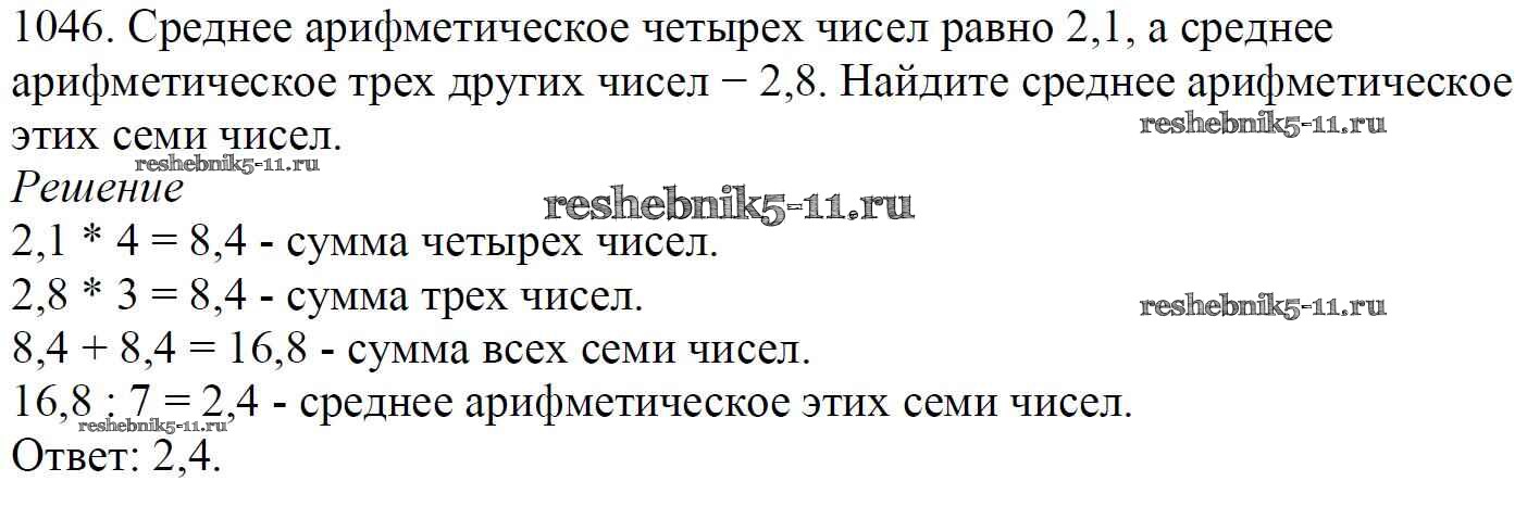 Готовая домашняя работа с ответами по Математике за 5 класс Мерзляк, Полонский, Якир Учебник Алгоритм успеха Вентана-граф 2016 ФГОС - §36. Среднее арифметическое. Среднее значение величины 1046