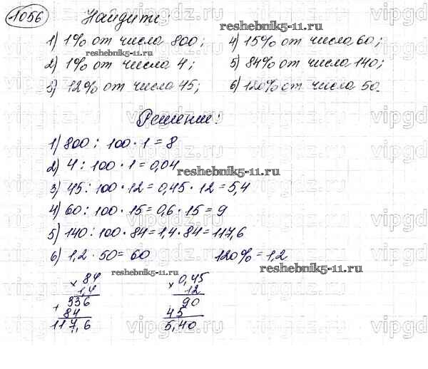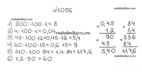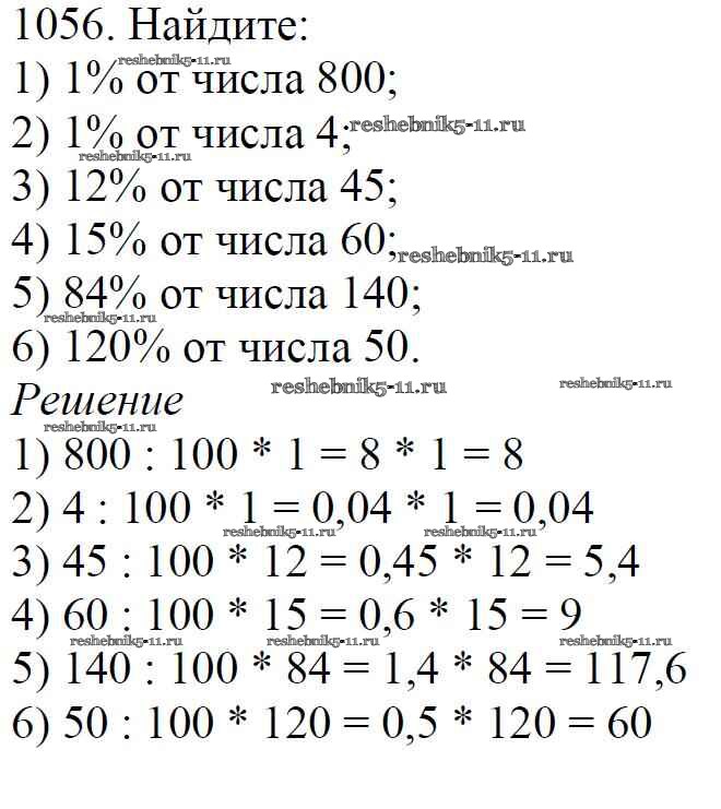 Готовая домашняя работа с ответами по Математике за 5 класс Мерзляк, Полонский, Якир Учебник Алгоритм успеха Вентана-граф 2016 ФГОС - §37. Проценты. Нахождение процентов от числа 1056