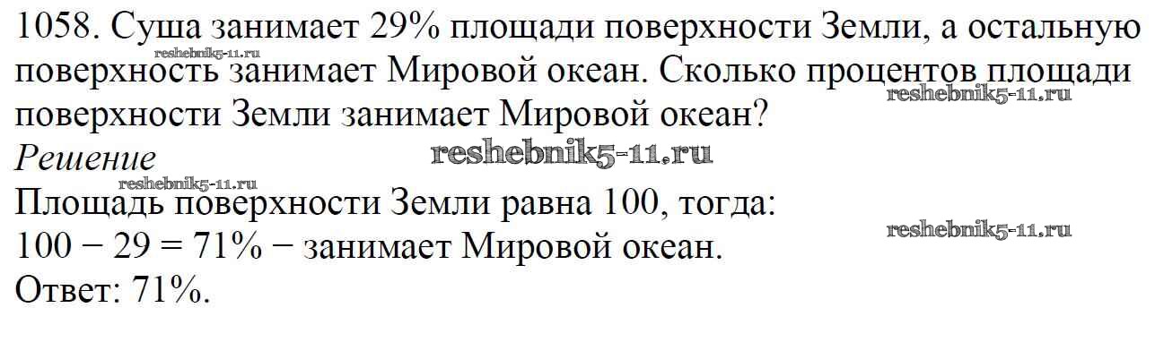 Готовая домашняя работа с ответами по Математике за 5 класс Мерзляк, Полонский, Якир Учебник Алгоритм успеха Вентана-граф 2016 ФГОС - §37. Проценты. Нахождение процентов от числа 1058