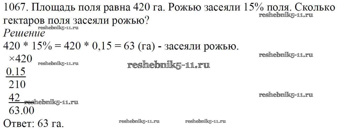 Готовая домашняя работа с ответами по Математике за 5 класс Мерзляк, Полонский, Якир Учебник Алгоритм успеха Вентана-граф 2016 ФГОС - §37. Проценты. Нахождение процентов от числа 1067