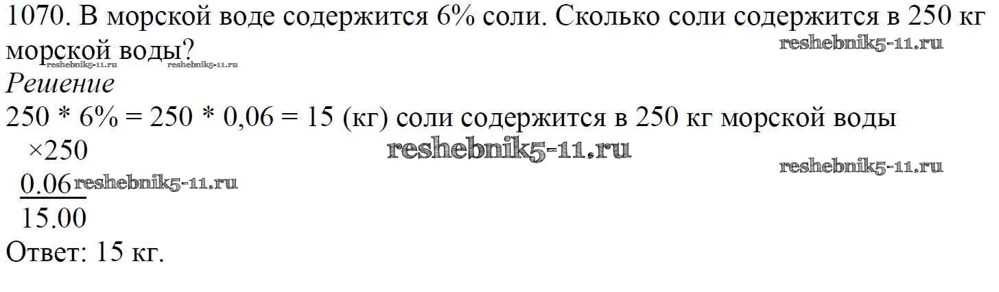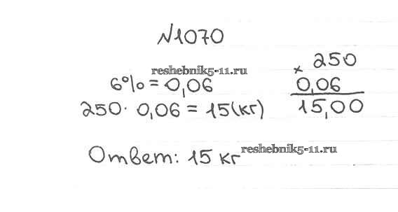 Готовая домашняя работа с ответами по Математике за 5 класс Мерзляк, Полонский, Якир Учебник Алгоритм успеха Вентана-граф 2016 ФГОС - §37. Проценты. Нахождение процентов от числа 1070