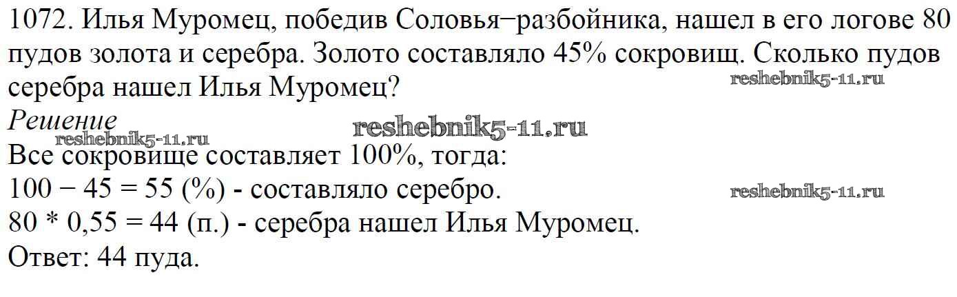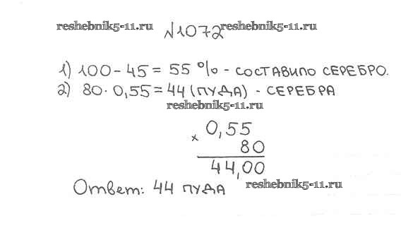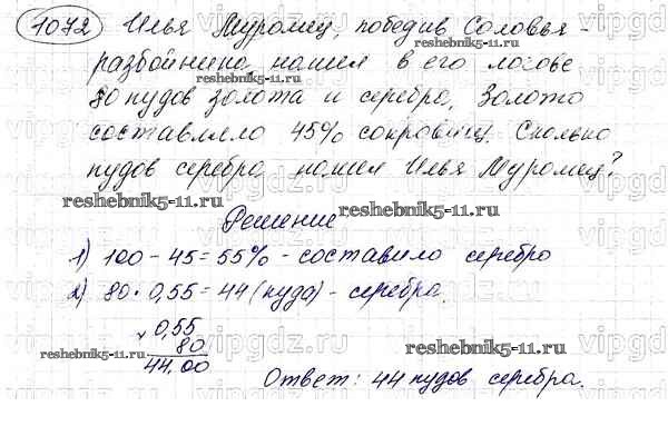 Готовая домашняя работа с ответами по Математике за 5 класс Мерзляк, Полонский, Якир Учебник Алгоритм успеха Вентана-граф 2016 ФГОС - §37. Проценты. Нахождение процентов от числа 1072
